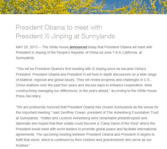 [???(人民網)] ???(習近平) ?? ????? ??? ?? ???? ??? ?? ?????? ??? ‘????(Sunnylands)’?? [詳情]