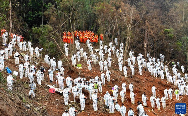 27日下午,“3·21”東航MU5735航空器飛行事故遇難者集體哀悼活動在事發地搜救現場舉行。