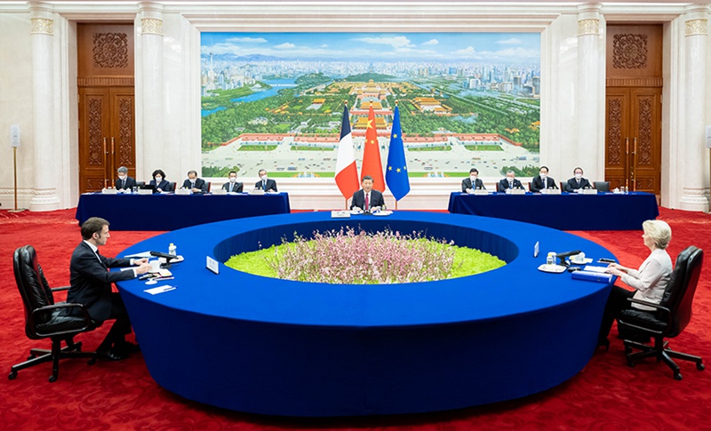 [??? ???? 4? 7?] 4? 6? ??, ???(習近平) ????? ??????? ???? ??? ??? ???, ???? ?????? EU(????) ?????? ??-???-EU 3? ??? ????. (??: ???)