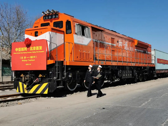 19日,北京首趟中亞班列開行,滿載90個標箱,貨值1600多萬元。