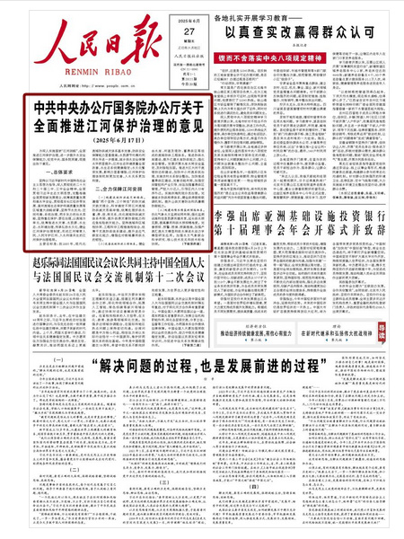 中共中央辦公廳國務院辦公廳關于全面推進江河保護治理的意見(2025年6月17日)