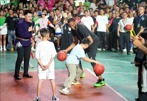 前美職籃(NBA)球星特雷西·麥克格雷迪現身“村BA”發源地、貴州省黔東南州臺江縣臺盤村,與現場“村BA”球員、球迷和觀眾開展了籃球互動。